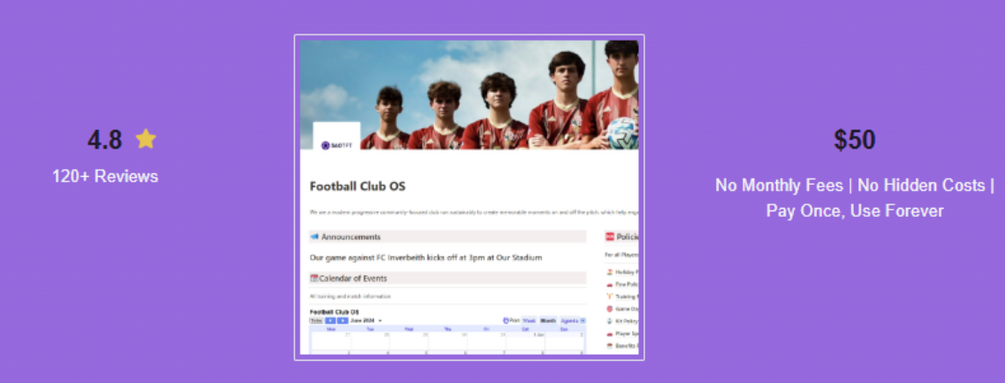 This all sounds complicated!   Nah, we have a half page user guide to help you.  It takes 10 mins to setup Notion and get started.  We also have a full system user guide for Football Club OS as well!